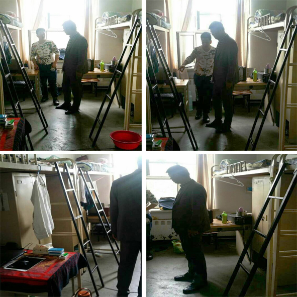本次检查的重点是男生寝室,刘春明书记强调要保障寝室的安全,杜绝携带任何违禁电器进入寝室,禁止在寝室内吸烟;保障寝室的卫生,要保持地面清洁,寝室物品摆放整齐、无杂物,被褥整齐,保持空气清新、门窗玻璃明亮。看到各个寝室干净整洁的样子,书记表示很欣慰。检查活动在轻松愉快的氛围中结束。