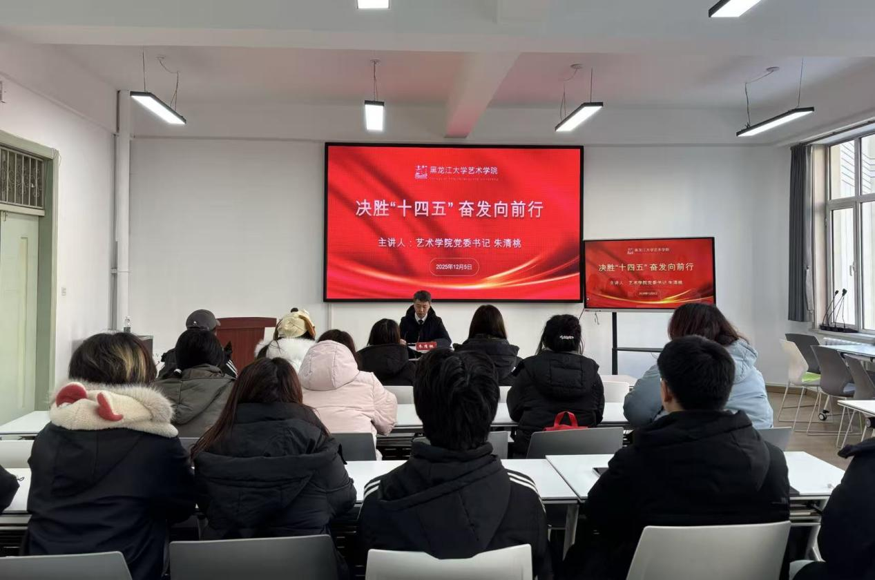 朱清桃通过回顾“十四五”取得的辉煌成就,让员工深刻感受“十四五”期间创新潜力、改革动力、开放活力,感受到举国上下决战决胜“十四五”精气神。通过紧密联系国家“十四五”规划收官与“十五五”谋划的关键节点的战略部署与宏伟蓝图,深刻阐释了在全面建设社会主义现代化国家新征程中,文化艺术事业所承载的重要使命。他指出艺术学子必须深刻认识自身专业学习与国家发展大势的内在联系,将个人艺术理想融入党和人民的事业之中,用手中的画笔、旋律、舞姿、镜头去描绘新时代、歌颂新征程。