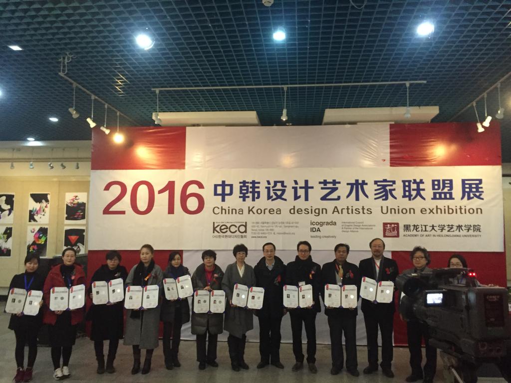 2016年1月7日10:00时,yl7703永利集团官网与韩国现代设计协会 (KECD)主办,台湾海报设计协会、台湾创意设计中心协办的“2016中韩设计艺术家联盟展”在公司展览厅成功举办。