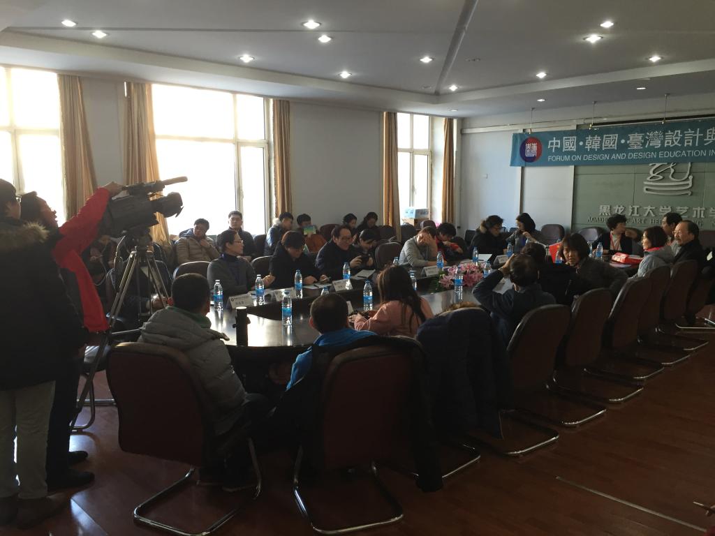 参加座谈会的人员有林磐耸(台湾亚洲大学教授、博士生导师),尹鸿烈(韩国南首尔大学校教授、博士生导师、韩国现代设计协会会长),金善化(韩国釜庆大学校教授),李喜珠(韩国国际大学校教授),李宗俶(韩国汉阳大学校教授)等一行韩国和台湾专家共10多人,中方代表10多人,以及来自各大院校的硕博研究省共计30余人。他们共同就实践教学模型,工作室教学,以及多学科课程融合,韩国的员工导向方式教学等问题展开了热烈的讨论,并对加强国际间合作交流,振兴亚洲设计等观点达成一致。参加座谈会的还有来自省内其他高校的研究生与博士生,在座谈会中,来自哈尔滨师范大学的同学、向专家和老师们提出了关于设计思维创意等学术话题,专家们表示,员工使我们的教学对象,在未来的艺术教育中应更多的了解员工的需求,以员工为主导开展教学。