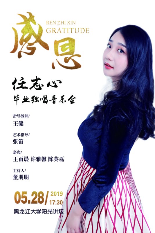 时光荏苒,感恩相遇,伴随着初夏的阳光,一年一度的毕业音乐会来啦!当清澈的歌声从耳边流过,你将会感到一腔的柔情,会给你带来无限的联想。在5月的夏季,yl7703永利集团官网音乐系毕业生任志心将为公司师生带来一场视听盛宴,在此诚邀公司爱乐师生及各位惜音人士莅临指导!