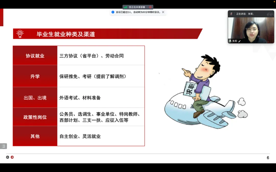 随后,朱军老师结合具体工作实际,从“立足现实、明确目标;脚踏实地、付诸行动;家校联动、有所收获”三个方面与毕业生及家长进行总结沟通。同时朱军老师对各位家长一直以来对学校、学院的工作支持表示感谢,也代表学院表达就业工作是学校、学院的重点工作,会全力以赴助力员工高质量就业,同时也表示只有家校真正做到联动,才能为毕业生在毕业之际的重要时间节点保驾护航。